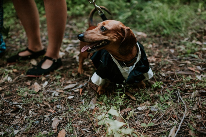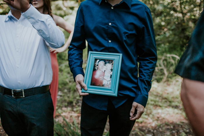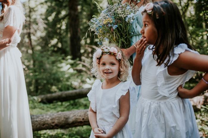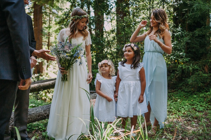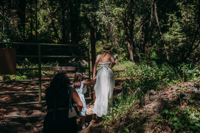 The couple and their guests hiked 1/4 mile into the forest before settling on the perfect spot for their ceremony.