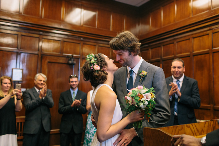 We knew from early on that we wanted a small, non-traditional wedding that could really be about us. Sometimes a big wedding can feel like a performance for everyone else rather than the couple’s personal commitment and we wanted to keep it simple. We’re generally private people, so an intimate city hall wedding with our immediate family felt right.