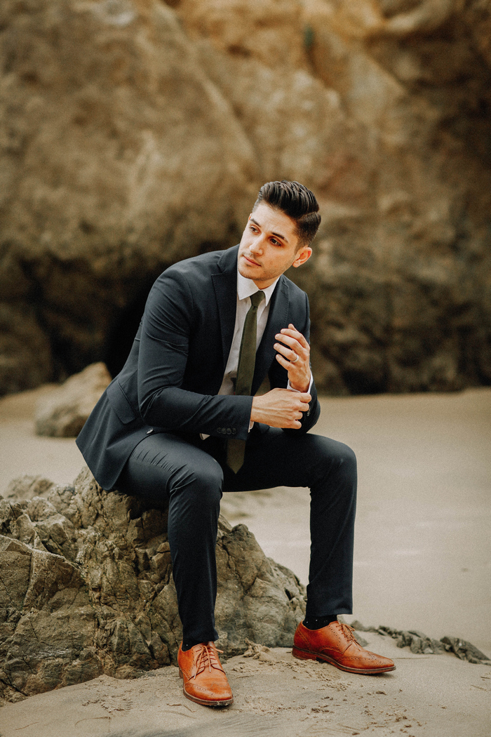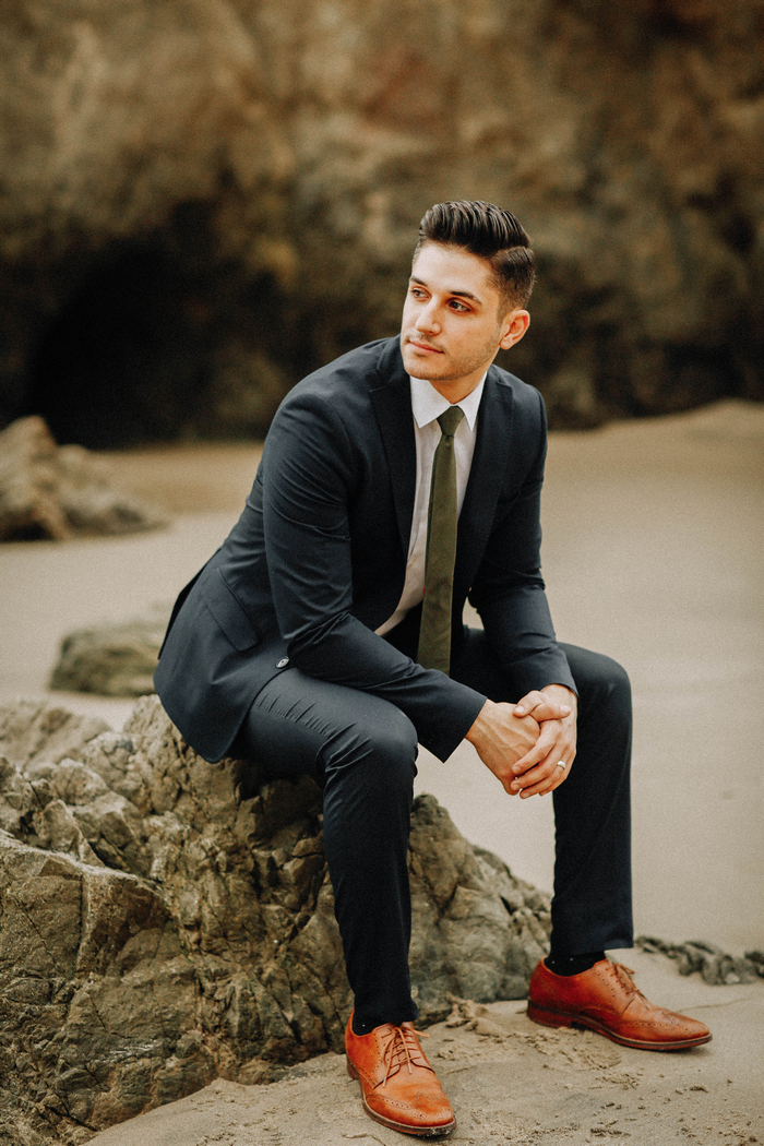 I knew that I wanted the color palette to be earthy, so sage greens, blush pinks, and tans were a must for the overall design. Everything ended up pairing perfectly with the location (El Matador Beach) and these two really made it too easy to capture the sweet and romantic mood I was initially going for!”