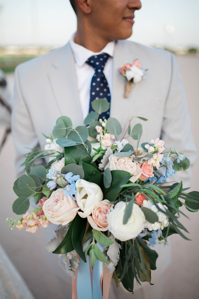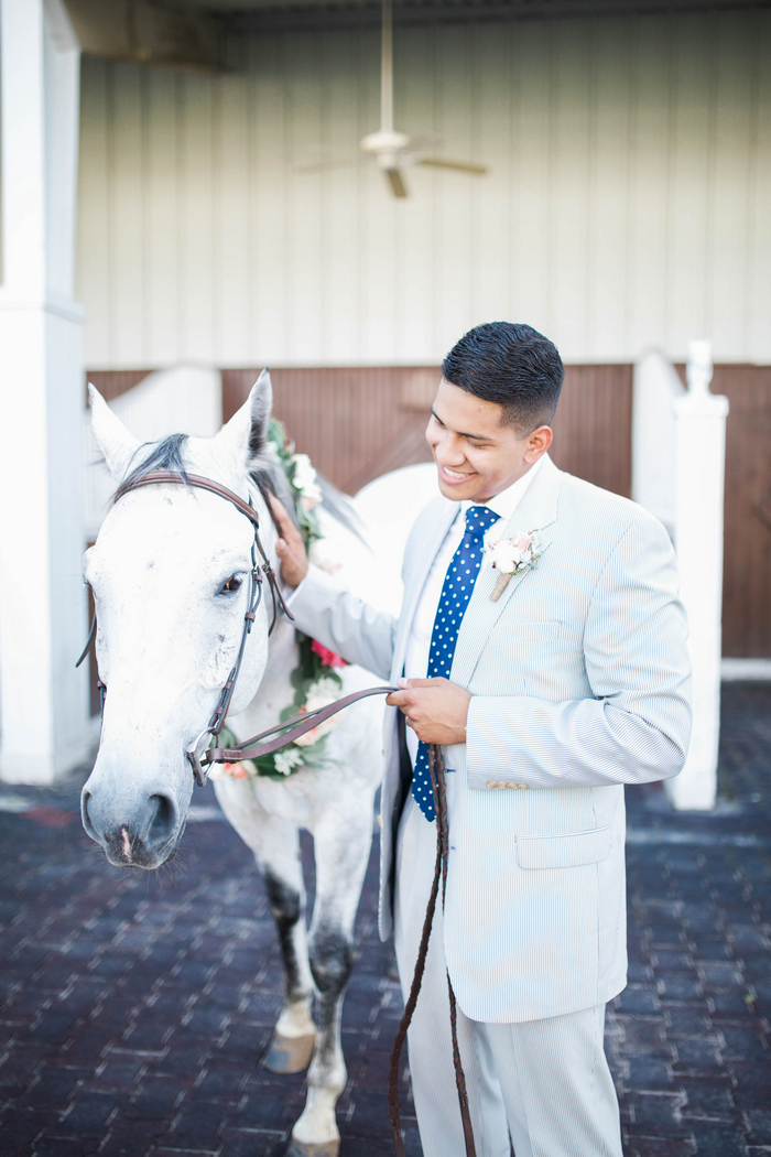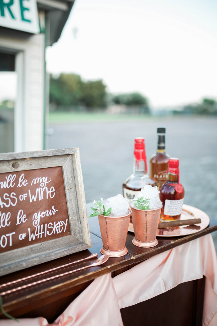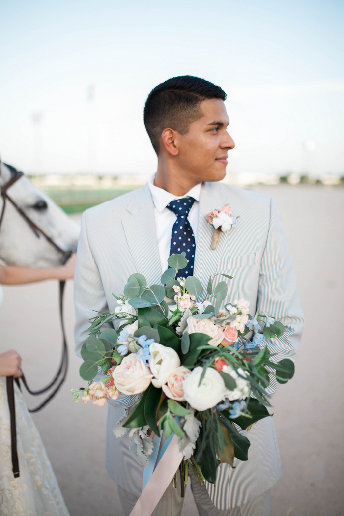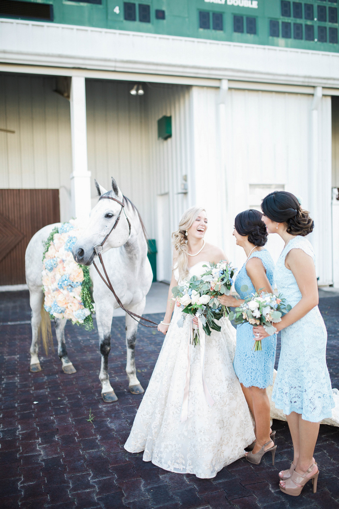 “When it came time to select a venue for their summer wedding, the bride and groom knew they wanted to share their love of the Kentucky Derby with their guests. The Sam Houston Race Track made for the perfect backdrop to document their love story – showcasing the bride’s own horse, Diesel, as a big part of the wedding day celebration. They toasted with mint juleps while dancing the night away on the dirt track surrounded by family and friends, reminding them of where their own love story got started.”