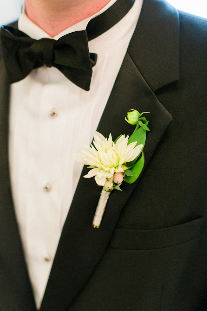 Tuxedo: Groom’s own, Joseph A. Banks, Bow tie: Charvet