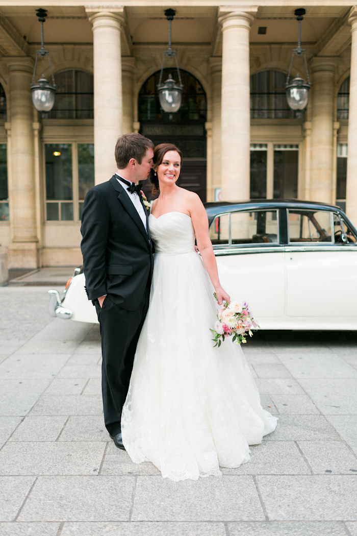 “Intimate Weddings was very helpful to us. It allowed us to view many real weddings and elopements in Paris, as well as providing information on local vendors. That is how we found French Grey Photography and Events … It was great to find everything we were looking for in one vendor, including flowers, hair and makeup, photography, and car service. It made the whole process a breeze,” explains Becky.