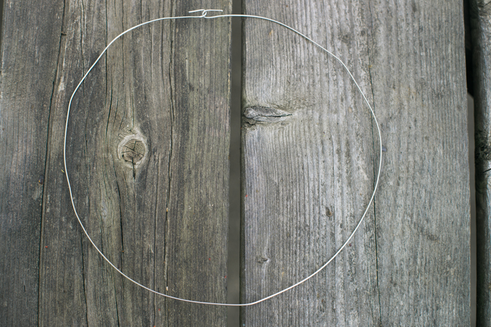 Cut wire the length of head’s circumference. Bend wire to form a circle and create a loop on each end of wire, joining the two ends together as shown in the photo.