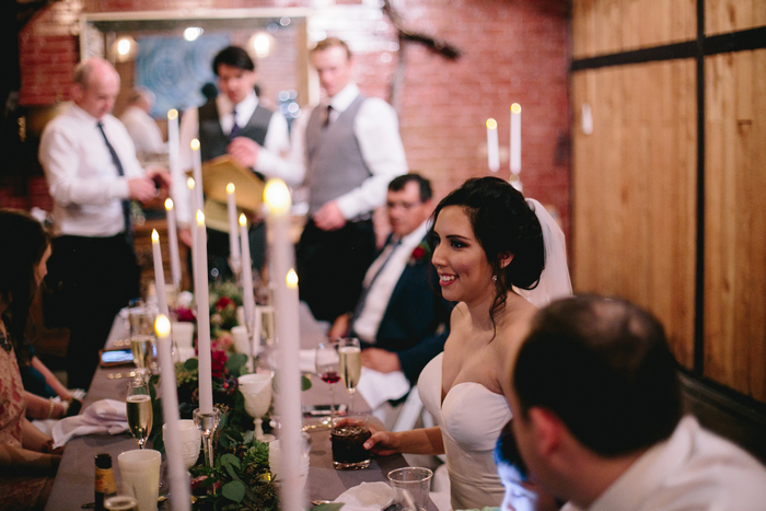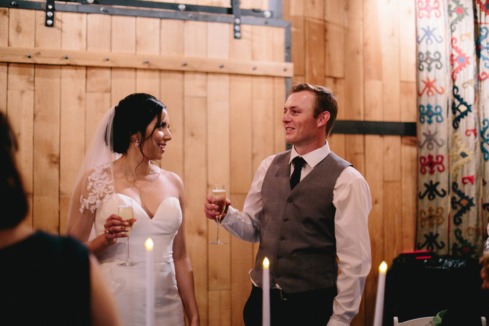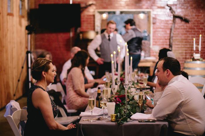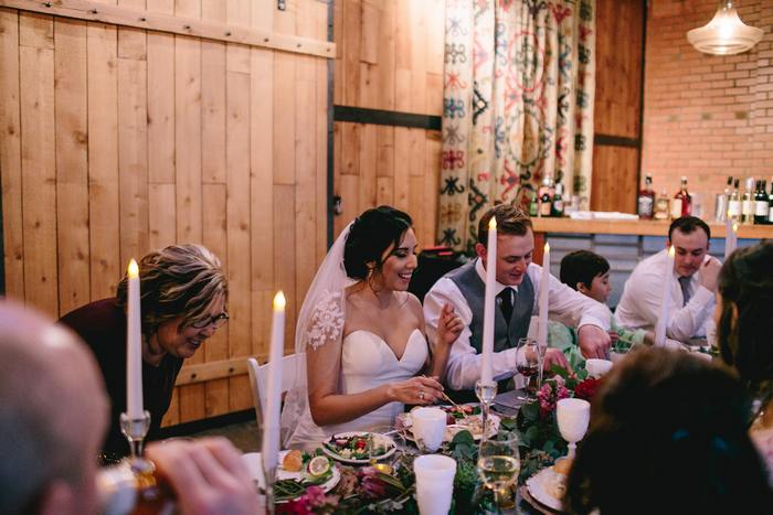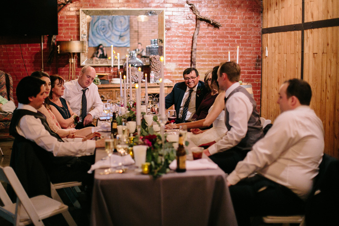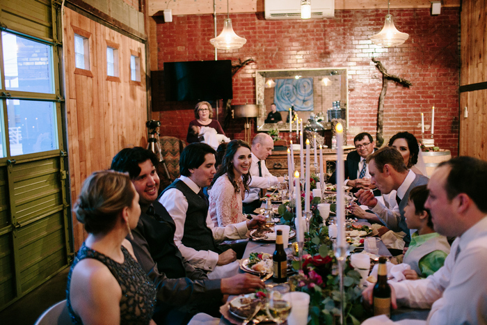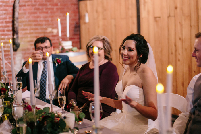 Truly a family-centric ceremony Janet’s brother officiated, her brother was the ringbearer, and both her parents walked the bride down the aisle. The reception was a slow and intimate affair in a private room at McPherson’s Cellars. The families celebrated and connected over dinner provided by Honeychild’s Catering. When dinner was done and sun had set they opened the garage style doors to the mild March evening creating a magical al fresco feel as they laughed and danced the evening away.